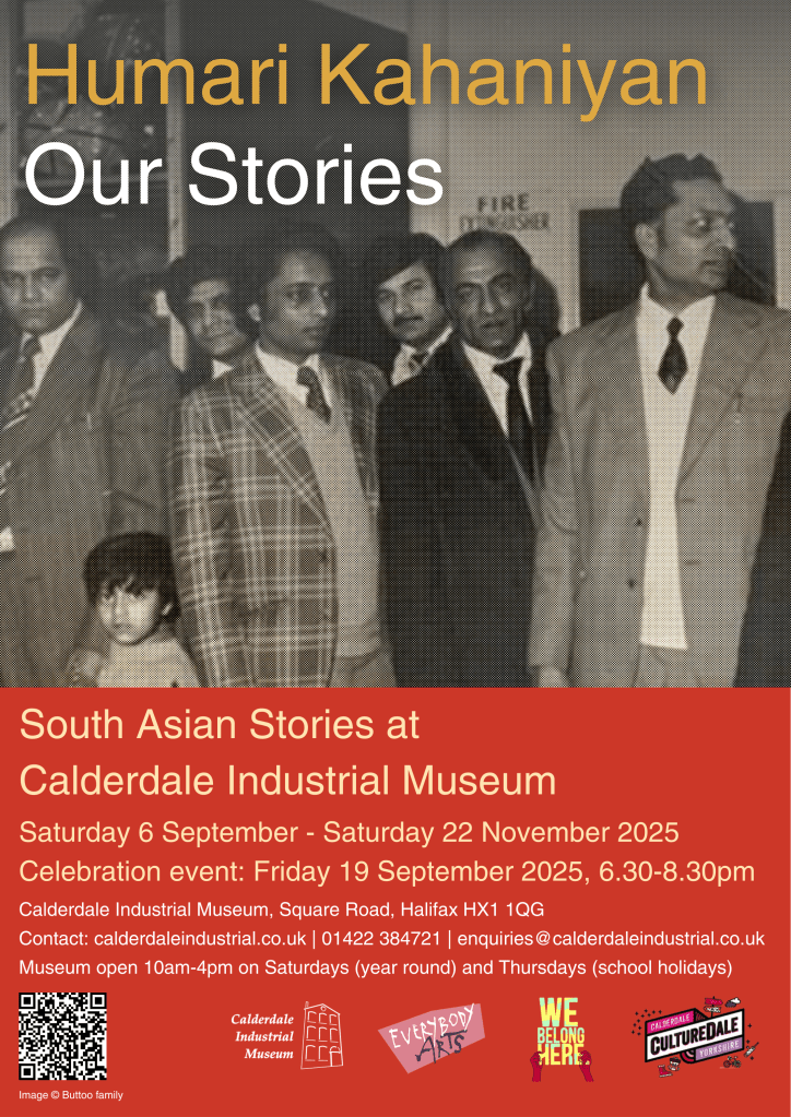 At the Calderdale Industrial Museum in Halifax, Humari Kahaniyan – Our Stories, is an oral history project which explores the South Asian migrant’s contribution to the textile industry in Calderdale, particularly during the 1950s to 1980s. It is a collaborative project with two community interest companies, Everybody Arts and We Belong Here, and has been funded by Culturdale24. Its outcomes include an exhibition in the Terry Sutton Gallery of the Calderdale Industrial Museum from 6 September to 22 November, and the collection of oral history stories which will be archived at the museum.