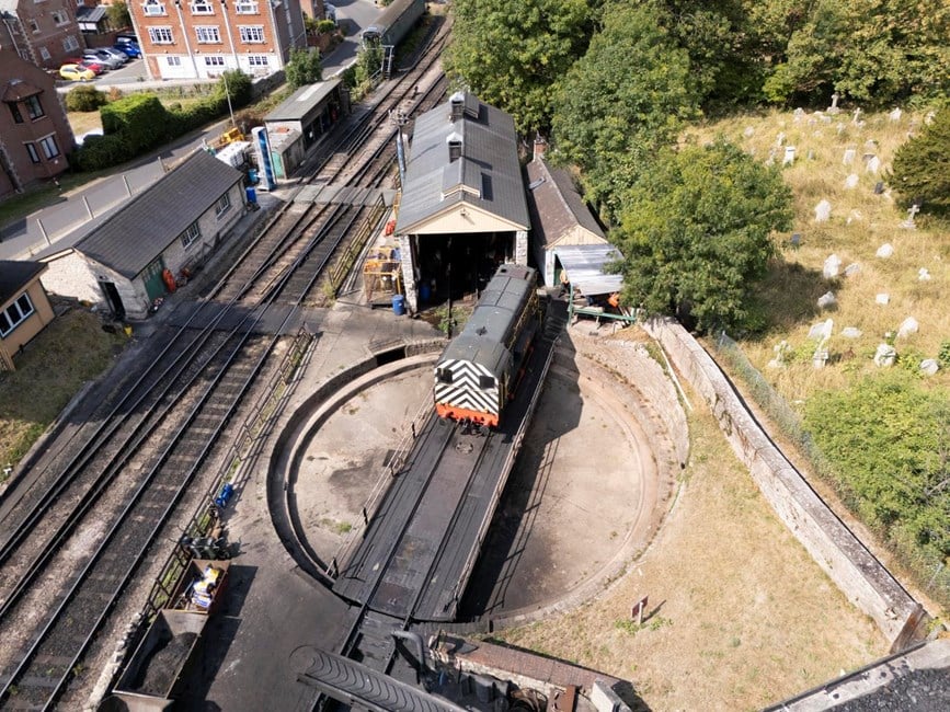 - and the Swanage engine shed and turntable and Northbrook Road overbridge on the Swange Railway.